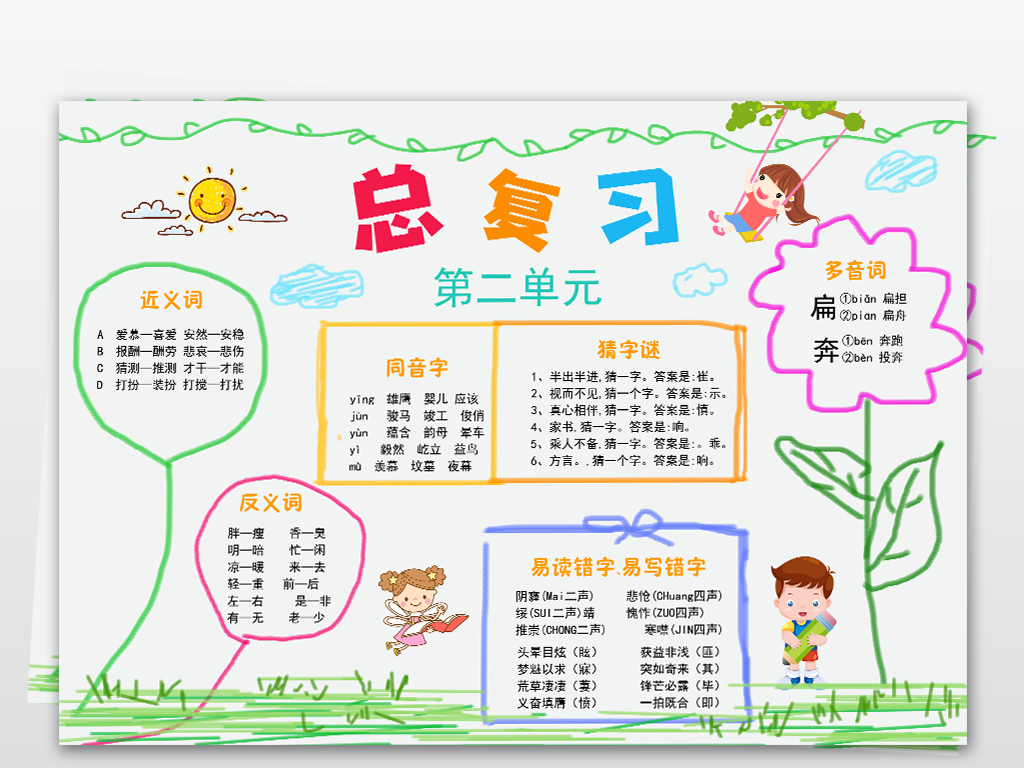 一个月后期末考试,怎么复习语文才能保证基础部分得满分?听我的按这四步走。第一步,课本后面都附带了生字表、词语表,咱们带孩子听写的时候注意不要只听单字,而是把它组成词语去听写,可以变换形式,比如说直接听写,看拼音填写,补全词语等等。第二步,把写错的字词收集起来,每周重新听写两次,并且要把它们组成不同的词和用来造句,连续三次能写对就算过关了,让孩子奖励自己贴上一颗小心心。第三步,语文园地要做到题一提过